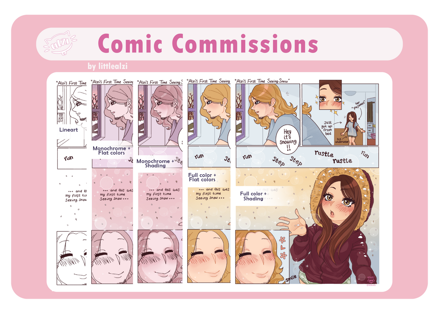 These prices also include the time and effort spent in creating a storyboard that will be shown to the client before starting the actual sketch linework.****(work process: client gives general or detailed information of what the comic should portray; storyboard creation; once the previous step is approved by the client, proceed to actual sketch of the page(s); once the previous step is approved by the client, proceed to coloring and shading if this applies to the commission requested.